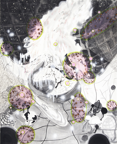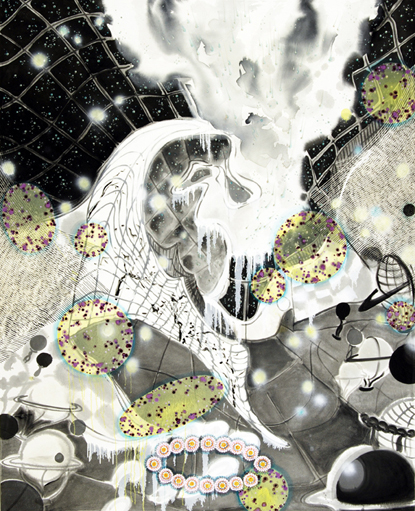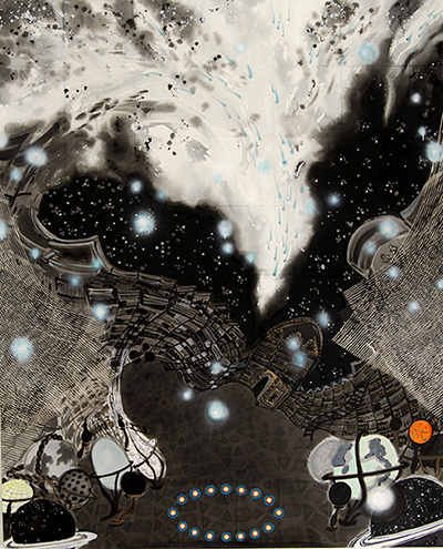 "Cosmic Kaleidoscope" painting from Pattern Recognition PT-1, 2012, 96"x78", sumi ink & oil on canvas |