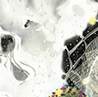 | "Silver River Prelude" painting from HyperBaroque SRP-2, 2012, 96"x78:", sumi ink & oil on canvas | ||||||||||||||||||||||||||||
