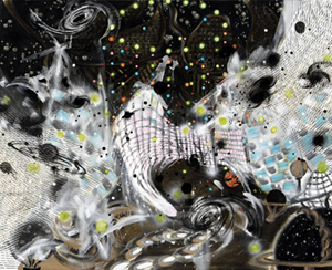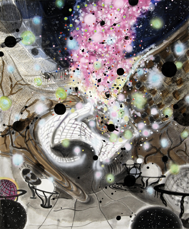 | "Cosmic Wanderlust" painting from Cosmic Theater CWC-10, 2012, 78"x96", oil on canvas | ||||||||||||||||||||||||||||