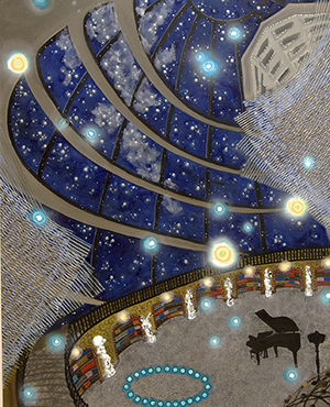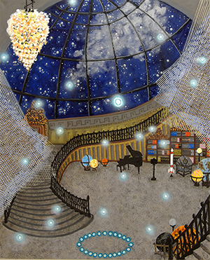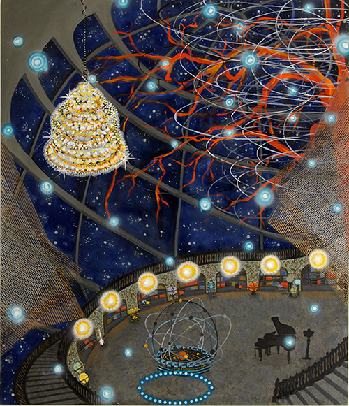 | "Piano Room" painting from Cosmic Theater PRM-1, 2014 84"x72" oil on canvas | |||||||
