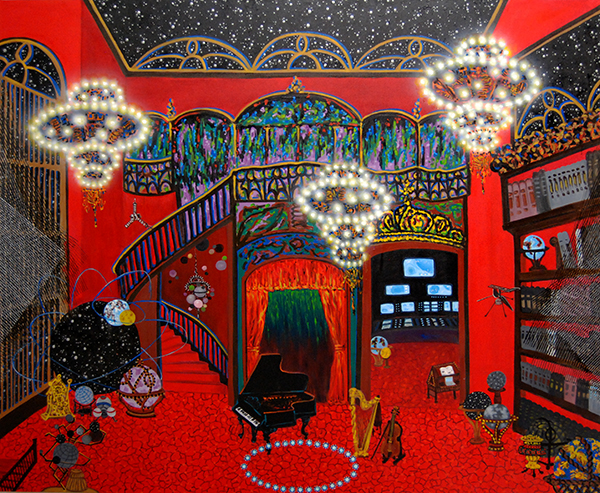 | Cosmic Returning" painting from Quantum Chandelier 21-C-5 , 2021 60"x48" oil on canvas | ||||||||||||||||||