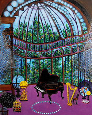 | "Quantum Chandelier" painting from Tesseract Study 21-C-4 , 2021 60"x72" oil on canvas | ||||||||||||||||||