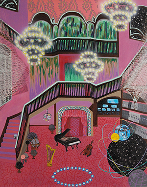 | "Quantum Chandelier" painting from Tesseract Study 21-B-2 , 2021 78"x96" oil on canvas |