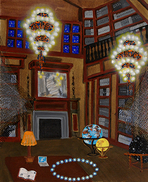 "Cosmic Returning" painting from Quantum Chandelier 21-D-3, 2021 42"x34" oil on canvas | |||||||||||||||||