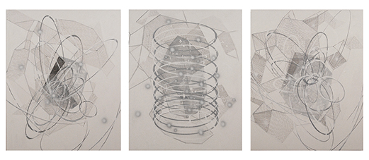 | "Roundabout Orbit" from Tesseract Study 21-HS-04, 2021, 14"x11", silverpoint on paper | "Roundabout Orbit" from Tesseract Study 21-HS-05, 2021, 14"x11", silverpoint on paper | "Roundabout Orbit" from Tesseract Study 21-HS-06, 2021, 8"x6", silverpoint on paper | ||||||||||||||||||||||||||||