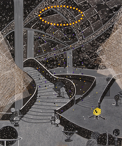 | "lagrangian point2" from Infinite Hope 22-K-23, 8"x10", gouache, ink & prismacolor on board | "Lagrangian point 2" from Infinite Hope 22-K-31, 8"x10", gouache, ink & prismacolor on board | "Lagrangian point 2" from Infinite Hope 22-K-29, 10"x8", gouache, ink & prismacolor on board | "Lagrangian point 2" from Infinite Hope 22-K-30, 10"x8", gouache, ink & prismacolor on board | ||||||||||||||||||||||||