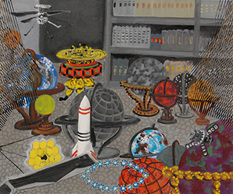 "Dome Ship" painting from Escape Velocity 21-D-1, 2021 42"x34" oil on canvas |