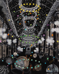 "Quantum Chandelier" from Cosmic Sleepwalk 25-K-69 10"x8", gouache, ink & prismacolor on board |