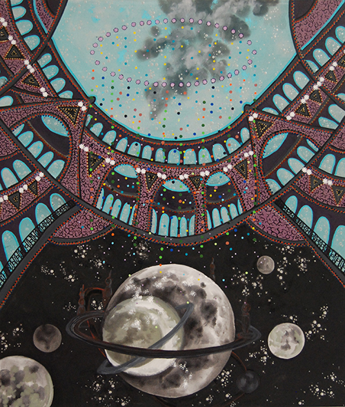 "Waiting Game" painging from Cosmic Theater 25-B-02 2025, 84"x72" oil on canvas |