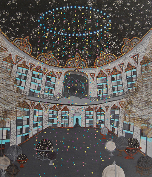 "Silent Dome" from Cosmic Theater 25-K-60, 10"x8", gouache, ink & prismacolor on board | ||||||||||||||||